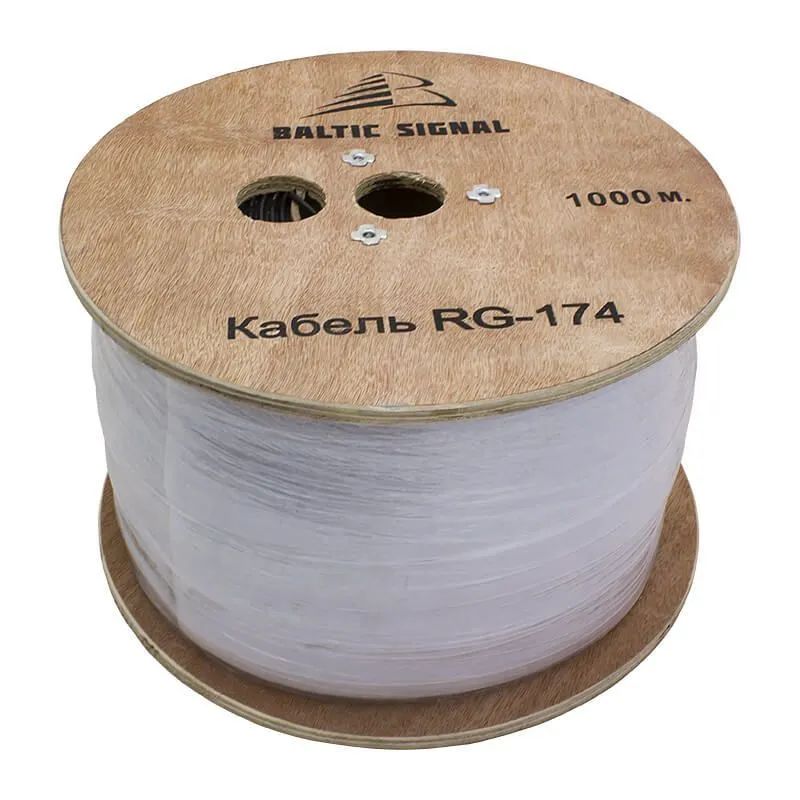 Тонкий коаксильный кабель RG-174 обладает отличными показателями гибкости и актуален для изготовления коротких проводников, кабельных сборок, подключения модемов к внешним антеннам, а также прокладки небольших трасс. Многожильный проводник кабеля изготавливается из меди, а экран представляет собой оплетку высокой плотности. Диэлектрик, размещенный между проводником и экраном, выполнен из вспененного полиэтилена с особой молекулярной структурой, который гораздо более долговечен за счет меньшей подверженности старению, чем стандартно применяемый полиэтилен, а также практически не дает усадку при пайке кабеля. А это, в свою очередь, препятствует смещению центральной жилы и замыканию на оплетку при нагревании.