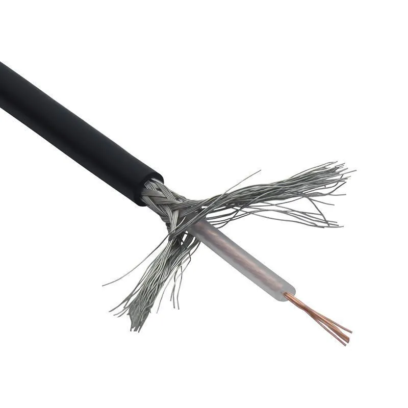 - Внешний плетеный проводник Ø1,90 мм. Внешним проводником, или экраном, выступает оплетка из луженого омедненного алюминия, которая защищает линию передачи от внешних электромагнитных помех и не допускает рассеивания передаваемого сигнала;