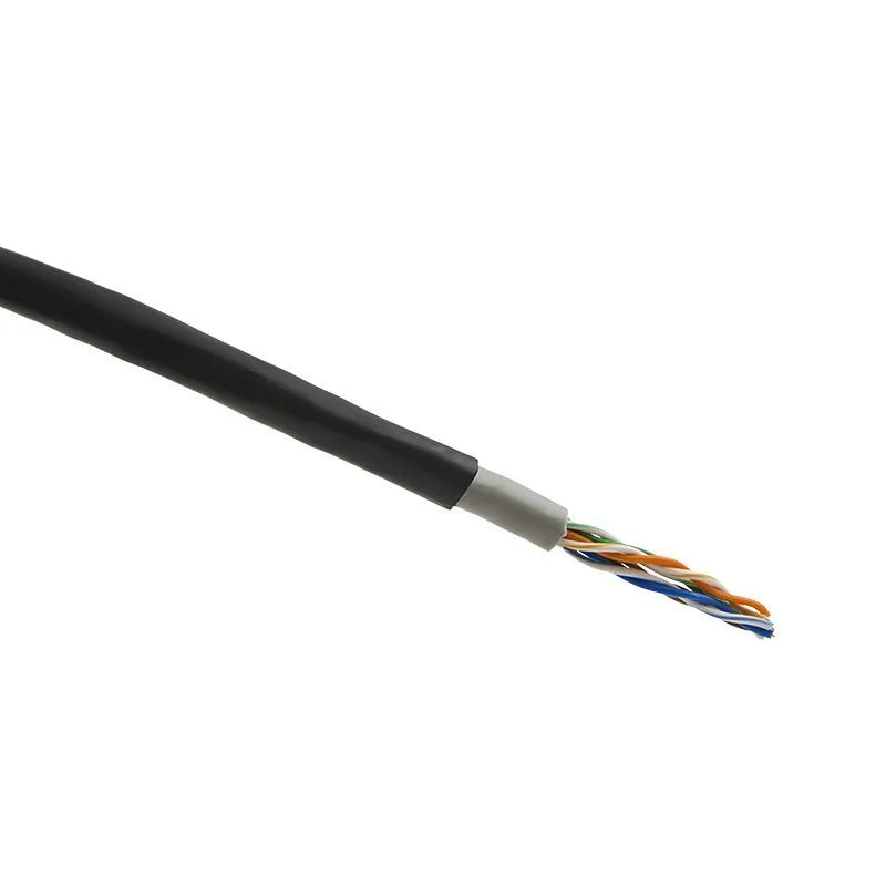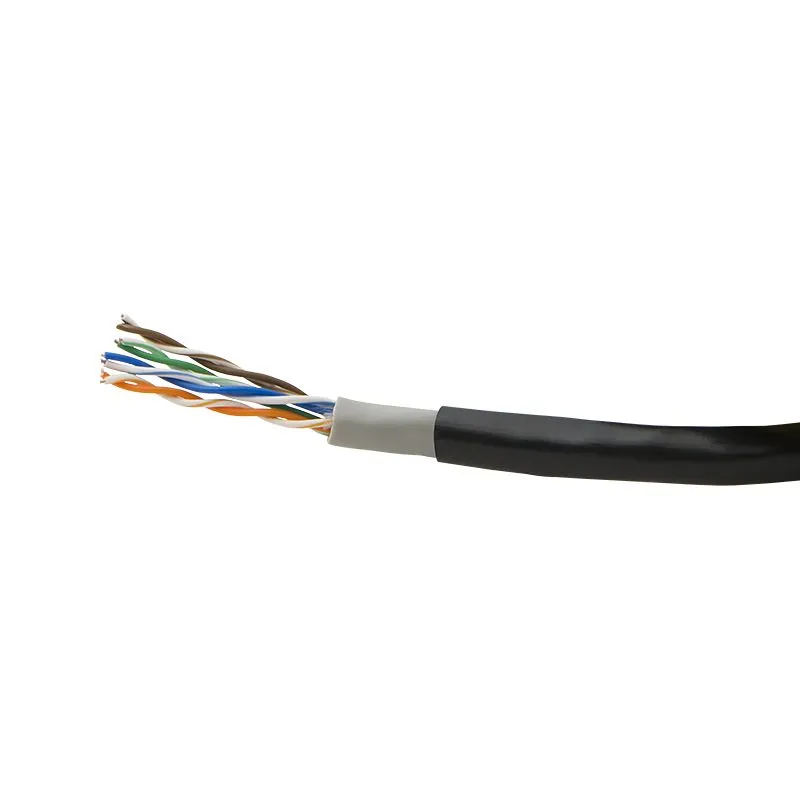 Всепогодный UTP-кабель класса 5e, совместимый с гигабитными Ethernet-сетями. Провод состоит из 8 попарно скрученных жил (4 пары), выполненных из чистой меди. Двойная защитная оболочка допускает прокладку в условиях дождя, снега, повышенной влажности или солнечной погоды. Благодаря применению медных проводников, кабель сохраняет высокую производительность на длинных линиях связи (вплоть до 100 м) и в системах с использованием PoE-питания большой мощности.