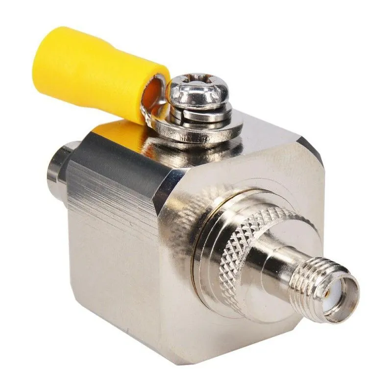 Компактное и эффективное устройство для защиты оборудования от опасных электростатических зарядов, накапливаемых во время грозы. Модуль грозозащиты с разъемами SMA устанавливается в качестве переходника между уличной антенной и активным ВЧ-устройством и соединяется с контуром заземления.