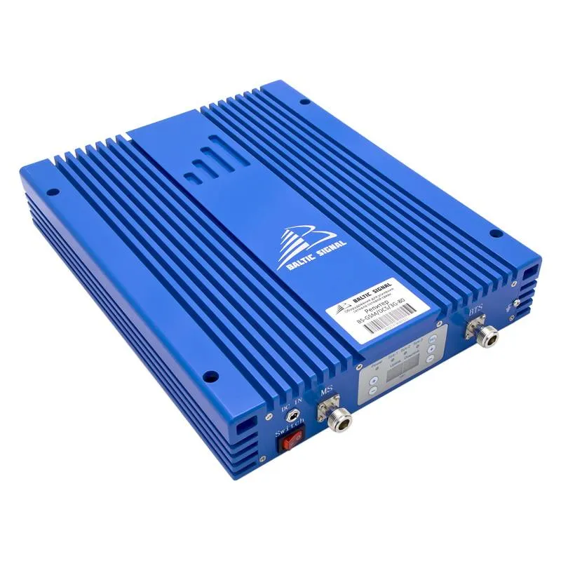 Универсальный трехдиапазонный усилитель высокой мощности, способный обеспечить стабильную голосовую связь и быстрый мобильный интернет на площади до 1500 м2. Имеет высокие технические характеристики (коэффициент усиления 80 дБ, выходная мощность 1000 мВт). Репитер BS-GSM/DCS/3G-80 произведен на отечественном заводе Baltic Signal.