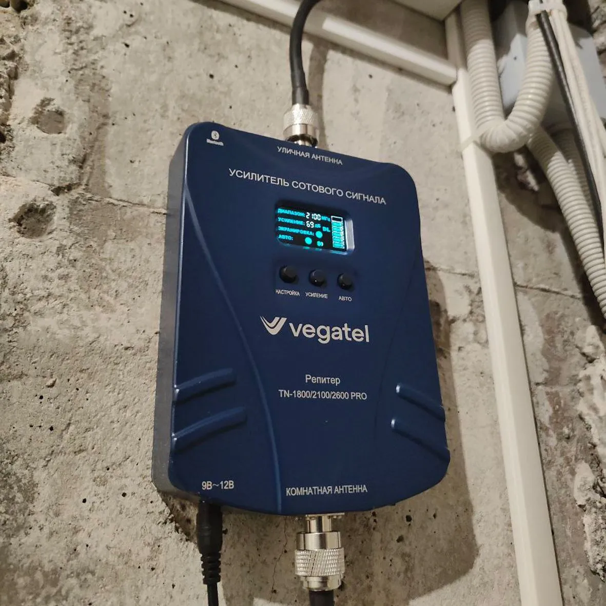 Репитер VEGATEL TN-1800/2100/2600 PRO усиливает 2G,3G и 4G сигналы всех сотовых операторов на частоте 1800, 2100 и 2600 МГц и решает проблему нестабильного мобильного интернета и сотовой связи на объектах до 1000* кв.м: в квартирах, домах и коммерческих строениях.
