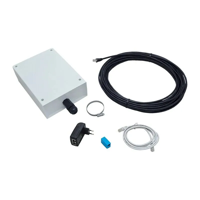 Чтобы подключить маршрутизатор к ПК или к домашнему устройству, используется специальный Ethernet-шнур. Его длина составляет 20 метров. Также дополнительно поставляется инжектор PoE. Он обеспечивает одновременную передачу данных и питания по единой линии. Благодаря этому роутер можно разместить достаточно далеко от ближайшей розетки.
