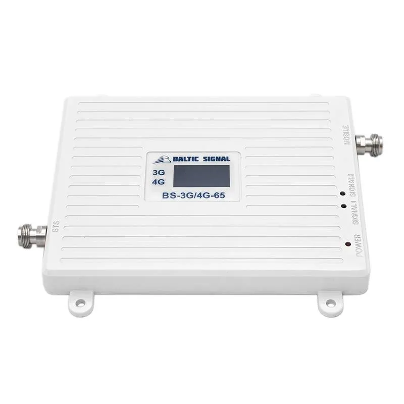 - Репитер Baltic Signal BS-3G/4G-65 усиливает сигнал в помещении, принимая его от базовой станции через внешнюю антенну.