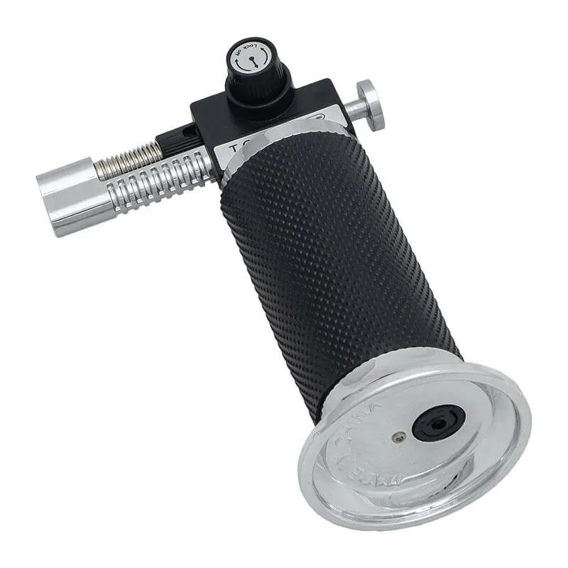 Регулировочное кольцо на дне рукоятки предназначено для управления напором газа. В нижней части ручки размещен клапан для заправки зажигалки. Переключатель «Lock Off» в верхней части рукоятки предназначен для блокировки устройства. Удобная клавиша запускает поток газа от баллона к соплу и активирует разряд пьезоэлемента (осуществляет поджиг газа).