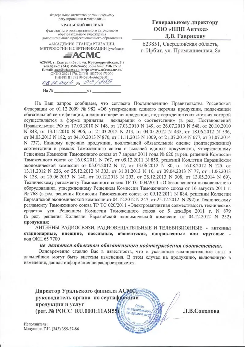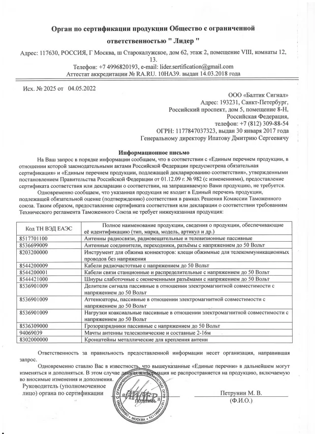Если вы не нашли сертификат на интересующую вас продукцию, обращайтесь к нашем менеджерам по телефону (812) 309-72-05 или любым другим удобным способом, мы обязательно предоставим нужный документ.