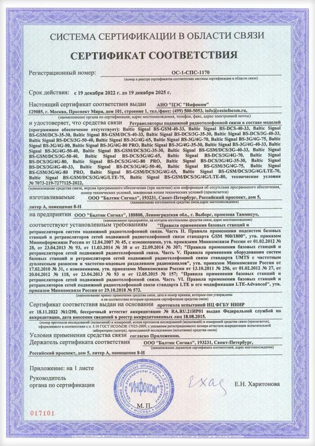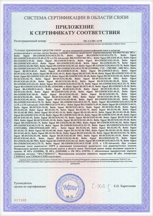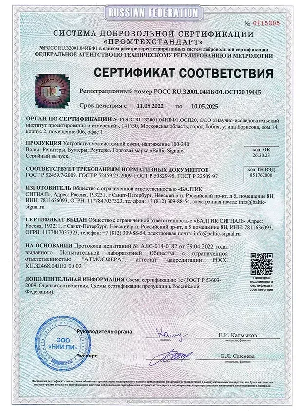 Покупая оборудование в нашем магазине вы можете быть уверены, что все репитеры прошли необходимую сертификацию и соответствуют всем нормам современного российского законодательства.